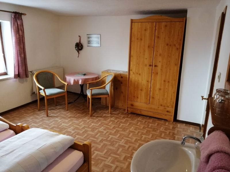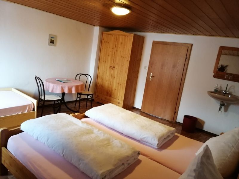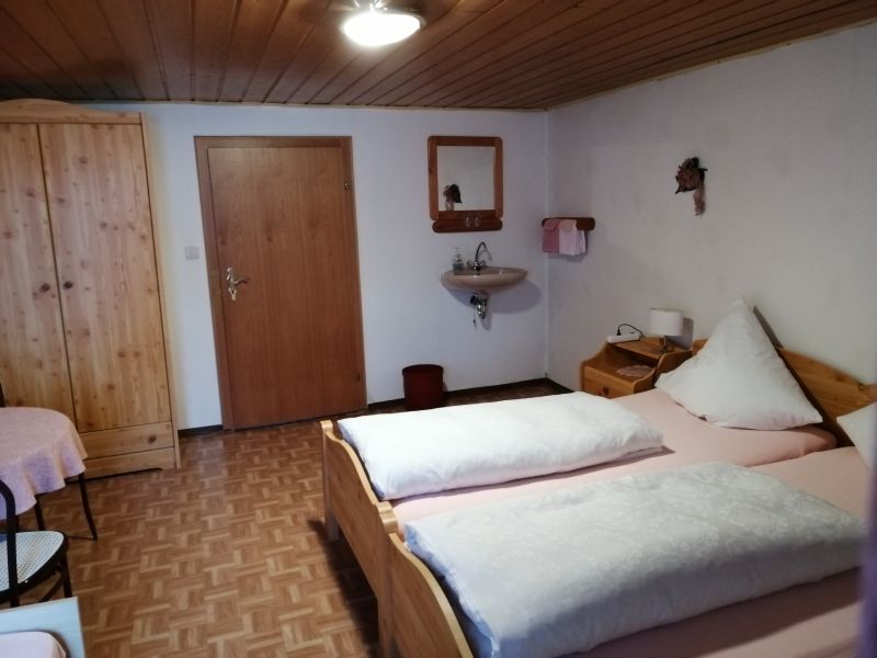 - 1 Familienzimmer mit 2 Räumen, ein Doppelzimmer und ein Dreibettzimmer mit Verbindungstüre (insgesamt 5 Betten)